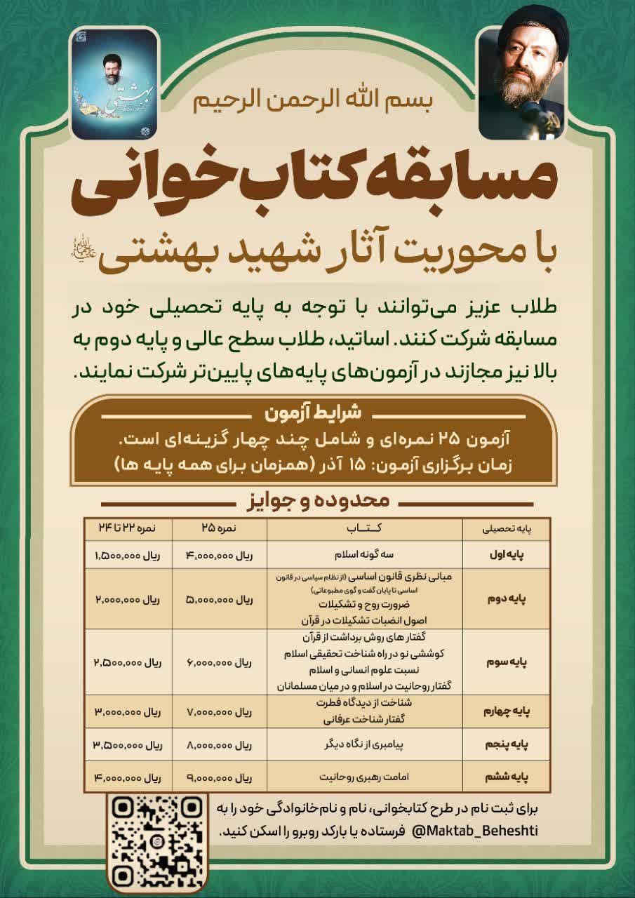 مسابقه کتابخوانی آثار شهید بهشتی (ره)